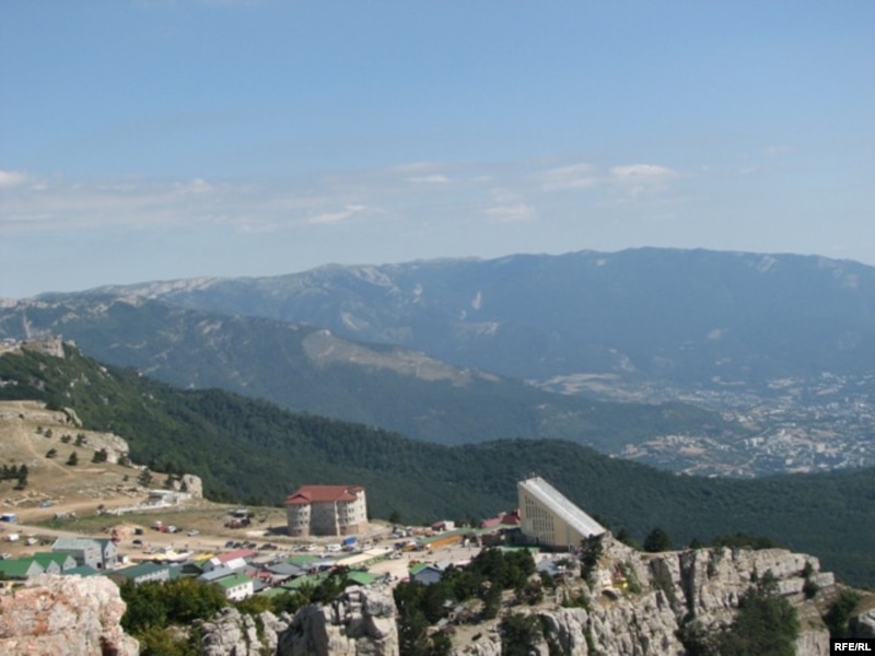 При въезде на смотровую площадку бросились в глаза далеко не живописные и явно не археологические развалины строений из ракушечника. Это были следы безжалостного сноса незаконно возведенных кафе и ресторанов, принадлежащих крымским татарам. Два года назад милицейская спецоперация по их сносу вызвала массовые волнения. Говорит свидетель происходившего Сервер: