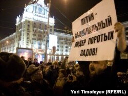 В Москве на Триумфальной площади прошла акция движения "Стратегия 31" в защиту 31-й статьи конституции, гарантирующей гражданам свободу собраний.