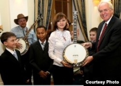 Солистку обнинского детского ансамбля «Веселый дилижанс» 15-летнюю сироту Лизу Карпачеву наградили американской премией Брайана Фризена, как молодого перспективного музыканта, играющего на банджо. Эта награда впервые была вручена исполнителю за пределами Соединенных Штатов, а представляет она собой великолепный пятиструнный инструмент от калифорнийской фирмы Deering Banjo Company. На нем сейчас Лиза Карпачева и играет. Премию Брайана Фризена вручил Лизе Карпачевой посол Соединенных Штатов в России Джон Байэрли. Церемония происходила в исторической резиденции посла, в московском Спасо-Хаусе. Посол Лизе запомнился таким: