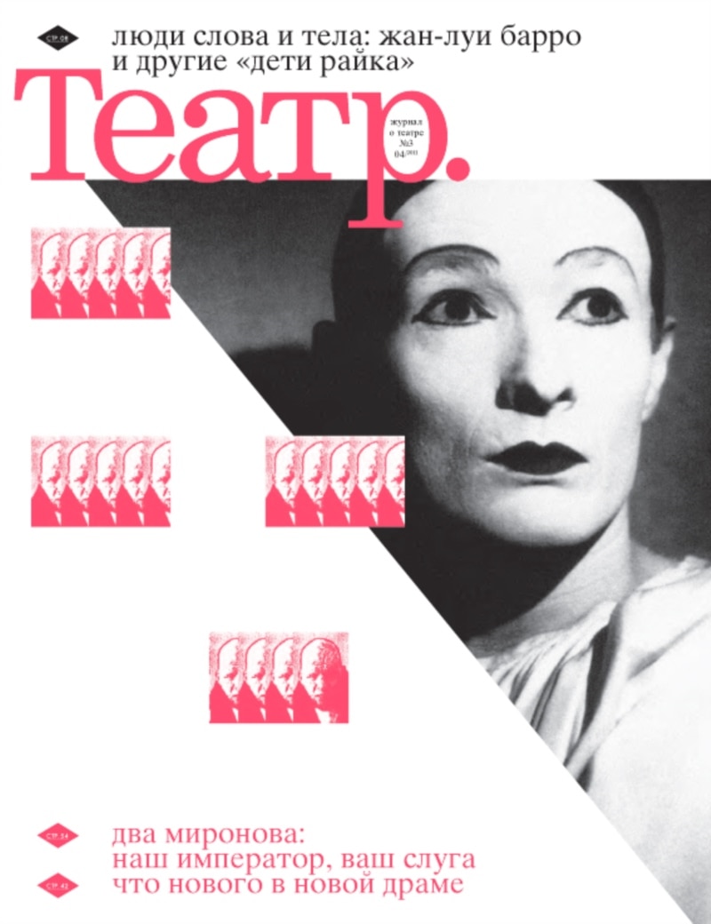 Марина Давыдова: Он так долго и так по-разному существовал, что мне сначала пришло в голову, что нужно обозначить какую-то преемственность, а потом, когда я стала вникать в суть дела, то встал вопрос: с чем, собственно, обозначать преемственность, журналов каких годов – 30-х, 50-х, 70-х, 90-х, нулевых? Это разные журналы. Иногда они мне нравятся, иногда не нравятся, иногда у меня даже отвращение журнал вызывает и совершенно мне не хочется с ним никакую преемственность обозначать. Это была полная перезагрузка, потому что в тот момент, когда мне предложили возглавить журнал ''Театр'', он представлял собой такой пустырь, обнесенный колышками, какая-то веревочка была натянута – вот тут можно построить журнал ''Театр''. Ничего нет, никакого фундамента, даже кирпичи не завезли, то есть какие будут кирпичи, тоже ты должен решить. И было очень непросто понять, как обозначить преемственность этого абсолютно пустого места с чем-то, что существовало когда-то. Но я решила, что формат должен более или менее остаться прежним, хотя он тоже менялся с течением времени, и логотип менялся. И сейчас кажется, что он абсолютно повторяет тот старый, а на самом деле это новый логотип. Просто я попросила художников Игоря Гуровича и Наташу Агапову сделать нечто новое, при взгляде на которое тут же вспоминаешь старое. Мне кажется, что они очень здорово с этой задачей справились. Не считая этих сугубо визуальных вещей, в остальном у нас совершенно новая структура журнала, таких разделов не было ни в старом ''Театре'', ни в одном из вообще существующих театральных журналов, и западных тоже. У нас есть разделы “Театр на сцене”, “Театр за сценой”, “Театр за пределами театра”. Причем на шмуцах мы их по-английски называем, потому что художнику легче работать с английскими буквами: “Оn Stage”, “Оff Stage”, “Beyond the Stage” и, соответственно, такое сочетание театроведения в “Оn Stage”, социологии театральной в “Оff Stage” и культурологии, рассуждений про существование театра за пределами театра в “Beyond the Stage” – это уже сама по себе не вполне обычная структура. Кроме того, есть раздел, который называется ''Yellow pages''. Я в данном случае настаиваю как раз на английском названии, потому у слова ''желтый'' есть совершенно определенная коннотация в русском языке, которой нет в английском языке – там ''yellow'' это просто некие страницы, на которых должна быть собрана информация. Они действительно желтые – когда ты смотришь сбоку на журнал, ты видишь сразу, где находится раздел ''Yellow Pages''. Мы собираем всякую интересную статистику, опросы, инфографику делаем. Иногда простые собранные нами факты позволяют взглянуть на театральную реальность с неожиданной точки зрения. Например, мы решили посчитать, сколько спектаклей, которым больше десяти лет (а вы понимаете, что для театра спектакль, которому больше десяти лет, это очень старый спектакль), идет на сценах московских театров. Когда мы начали считать, мы ''ужахнулись'', как говорится — выяснилось, что это почти треть репертуара. Соответственно, следующая треть – это те спектакли, которым от десяти до пяти лет, что тоже довольно много. Мы не делам из этого никаких выводов, но мы предлагаем читателю самому задуматься, потому что совершенно очевидно, что, с одной стороны, это отрадно, потому что есть некоторые шедевры театральные… В самом деле, хотите вы посмотреть каки