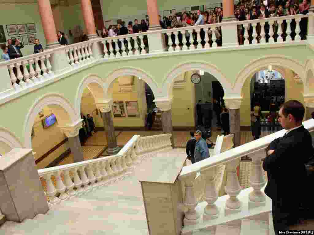 Russia--Visit of Russian President Dmitry Medvedev at the The Faculty of Journalism at Lomonosov Moscow State University, MSU, 20Oct2011