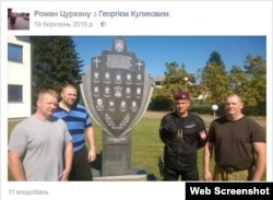Роман Цуркану (крайний слева) и Григорий Цуркану (крайний справа) в Банья-Луке, Босния (Республика Сербская), 2014 год. Эту фотографию Роман Цуркану уже удалил из своего "Фейсбука", копия сохиранена здесь. Сам его профиль в этой социальной сети пока доступен.