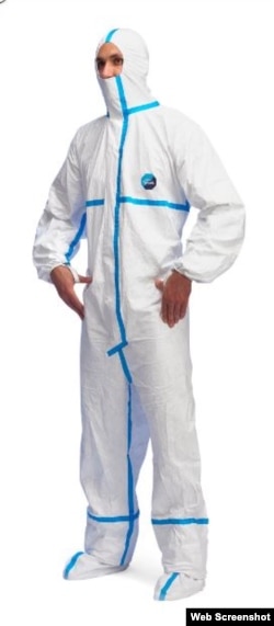 На этом фото – предположительно, выброшенный специальный защитный костюм. Обратите внимание на голубую полосу: такие же есть, к примеру, на одном из комбинезонов химической защиты, представленном на российском рынке. Если верить описанию, комбинезон предназначен, в числе прочего, для "защиты от проникновения радиоактивных частиц".