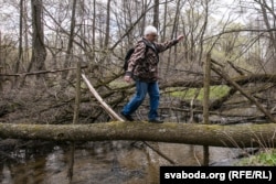 "Здесь дом наш, там баня, я ее топил. Тут – место наших огородов. Клены эти я посадил, лет 11 мне было. А под липой на скамейке половина деревни перецеловалась", – Александр Степаненко руками в воздухе рисует ему одному теперь известную картину. Мы видим здесь поле, заросшее травой, кустами и деревьями. А он – широкую улицу, дом деда, соседские сады, вспоминая десятки родных историй из деревни Киселёвка.