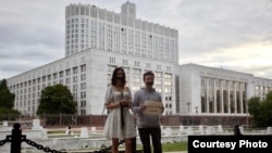 Кандидаты в муниципальные депутаты Москвы Мария Волох и Сергей Смирнов провели акцию в центре столицы против репрессивных законов, по которым людей, в частности, наказывают за выступления против войны в Украине.